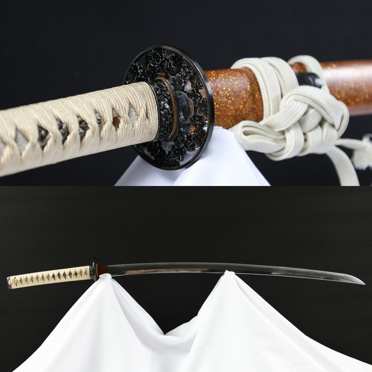 Folded Oroshigane Steel Shinken (真剣) | Sakura Radiance Katana: TangGu (湯谷) Oroshigane (卸し金) Kobuse Blade (甲伏造) + TangGu (湯谷) Kōei Koshirae (光映拵)
