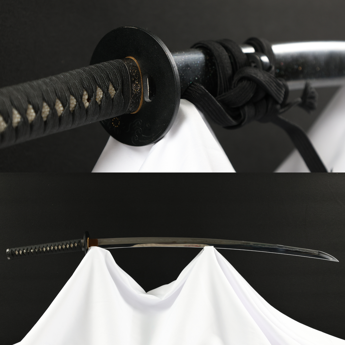 - Handle Wrapping (柄巻): Black silk (or cotton) tsuka-ito, tightly wrapped in traditional style.