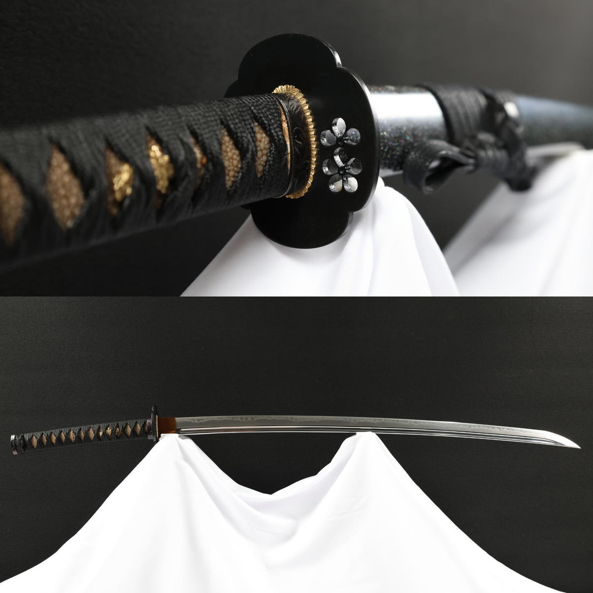 - Handle Wrapping (Tsuka-maki 柄巻): Black silk (or cotton) tsuka-ito, tightly wrapped in traditional style.